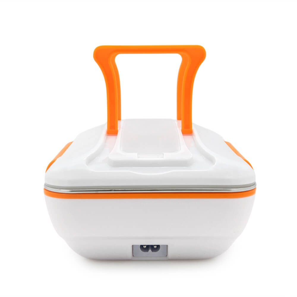 Герметичный контейнер для хранения готовой пищи. Контейнер выполнен из пищевой нержавеющей стали в наружном корпусе из пластика. Внутренняя емкость контейнера разделена на три отделения. Разогрев пищи в течение 20 минут. Для разогрева используется подключение к бортовой сети автомобиля или от сети 220 вольт. Контейнер предназначен для приема горячей пищи в дороге.